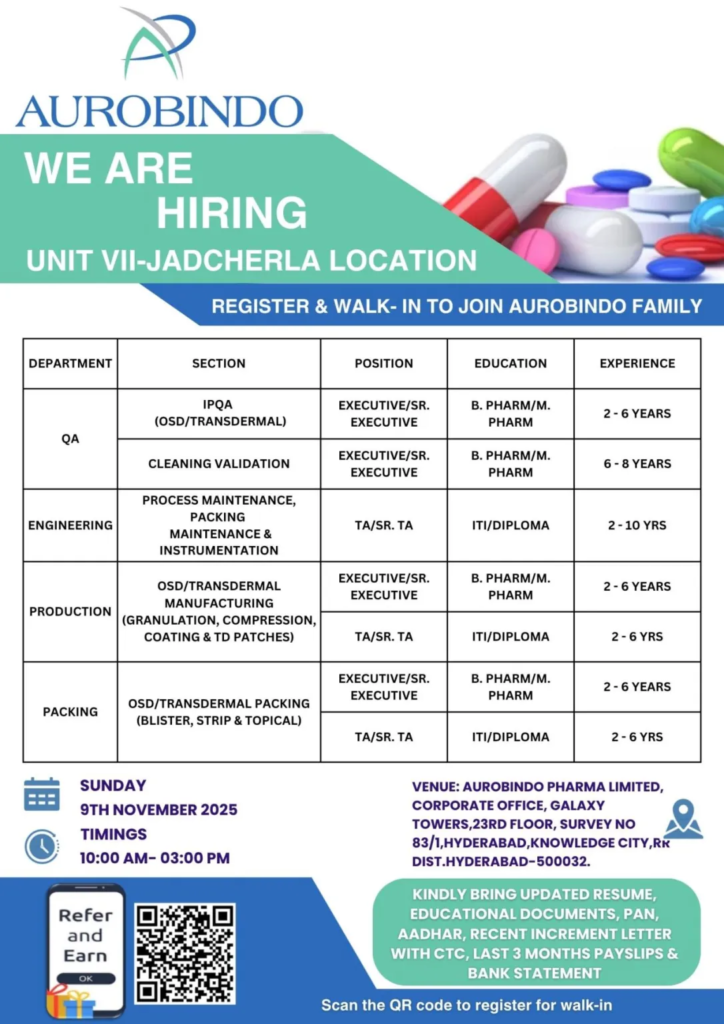 Exciting Career Opportunity at AUROBINDO PHARMA LTD