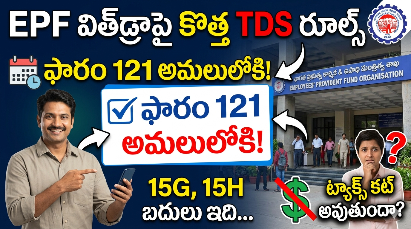 ఈపీఎఫ్ఓ సభ్యులకు శుభవార్త! టీడీఎస్ కోతలను నివారించేందుకు కేంద్ర ప్రభుత్వం కొత్త ఫారం 121ని ప్రవేశపెట్టింది. ఏప్రిల్ 1 నుండి అమలులోకి వచ్చిన ఈ ఫారం, పాత 15G, 15H స్థానంలో వచ్చింది.