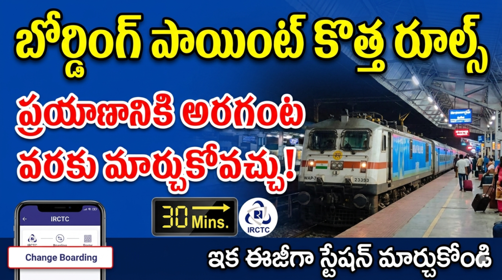 ప్రయాణికుల సౌకర్యార్థం భారతీయ రైల్వే (Indian Railways) ఇటీవల కొత్త సదుపాయం తీసుకొచ్చింది. ప్రయాణానికి అరగంట ముందు కూడా బోర్డింగ్ పాయింట్ (Boarding point) మార్చుకునే వెసులుబాటు తీసుకొచ్చింది. గతంలో ఇలా ఎక్కాల్సిన స్టేషన్ మార్చుకోవాలంటే 24 గంటల ముందు మాత్రమే సాధ్యమయ్యేది. అనుకోని కారణాల వల్ల సంబంధిత స్టేషన్లో రైలు అందుకోలేమన్న అనుమానం ఉన్నప్పుడు 30 నిమిషాల ముందు బోర్డింగ్ పాయింట్ మార్చుకోవడం ద్వారా ఆదరబాదరగా ట్రైన్ ఎక్కాల్సిన అవసరం తప్పుతుంది. ఏప్రిల్ 1 నుంచి 15 మధ్య దశలవారీగా ఈ సదుపాయం దేశవ్యాప్తంగా అందుబాటులోకి రానుంది.