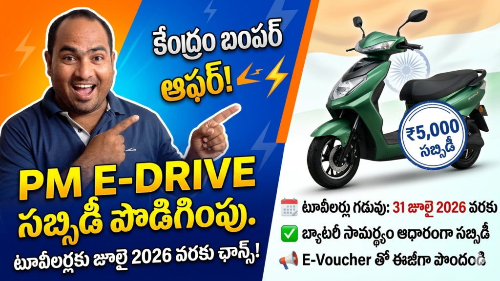 దేశంలో ఎలక్ట్రిక్ వాహనాల వినియోగాన్ని మరింత వేగవంతం చేసేందుకు కేంద్ర ప్రభుత్వం కీలక నిర్ణయం తీసుకుంది. ప్రతిష్టాత్మక పీఎం ఇ-డ్రైవ్ పథకం కింద అందుతున్న రాయితీలను పొడిగిస్తున్నట్లు భారీ పరిశ్రమల మంత్రిత్వ శాఖ ప్రకటించింది. ముఖ్యంగా ఎలక్ట్రిక్ టూవీలర్ కొనుగోలుదారులకు ఈ నిర్ణయం పెద్ద ఊరటనివ్వనుంది. ఎలక్ట్రిక్ టూవీలర్లకు సబ్సిడీలను జూలై 31 వరకు పొడిగించారు. ఇ-రిక్షా, ఇ-కార్టులపై రాయితీలను ఏకంగా మార్చి 31, 2028 వరకు పొడిగిస్తూ కేంద్రం నిర్ణయం తీసుకుంది.