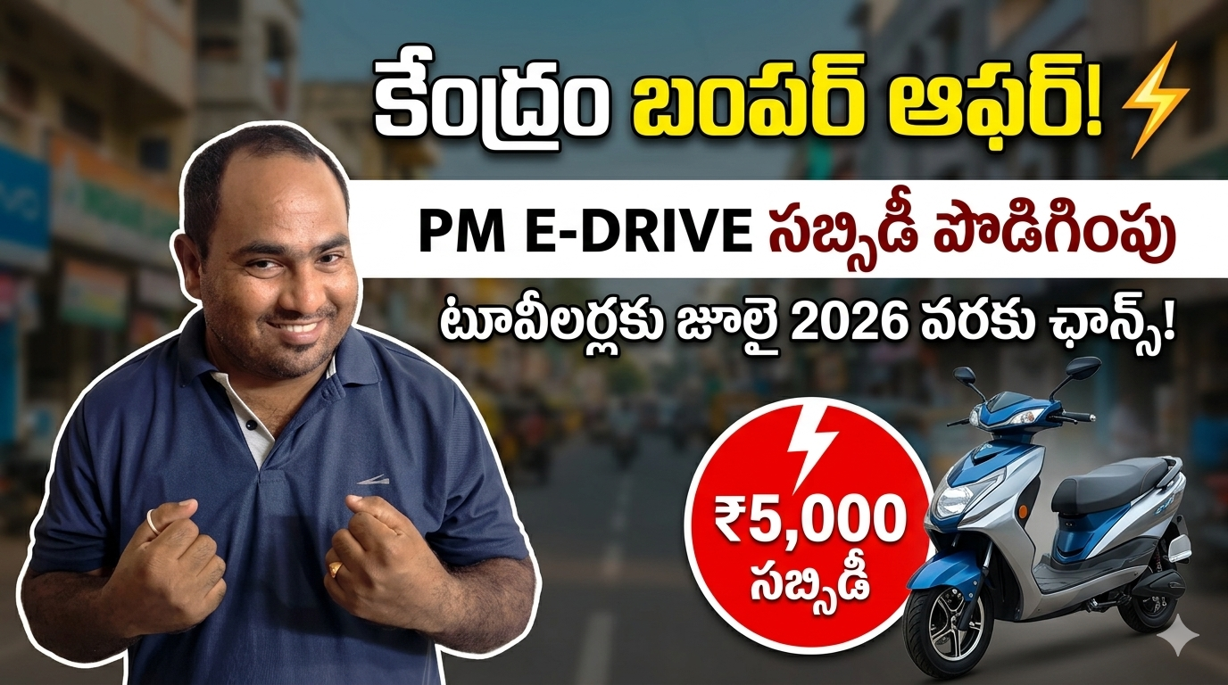 దేశంలో ఎలక్ట్రిక్ వాహనాల వినియోగాన్ని మరింత వేగవంతం చేసేందుకు కేంద్ర ప్రభుత్వం కీలక నిర్ణయం తీసుకుంది. ప్రతిష్టాత్మక పీఎం ఇ-డ్రైవ్ పథకం కింద అందుతున్న రాయితీలను పొడిగిస్తున్నట్లు భారీ పరిశ్రమల మంత్రిత్వ శాఖ ప్రకటించింది. ముఖ్యంగా ఎలక్ట్రిక్ టూవీలర్ కొనుగోలుదారులకు ఈ నిర్ణయం పెద్ద ఊరటనివ్వనుంది. ఎలక్ట్రిక్ టూవీలర్లకు సబ్సిడీలను జూలై 31 వరకు పొడిగించారు. ఇ-రిక్షా, ఇ-కార్టులపై రాయితీలను ఏకంగా మార్చి 31, 2028 వరకు పొడిగిస్తూ కేంద్రం నిర్ణయం తీసుకుంది.