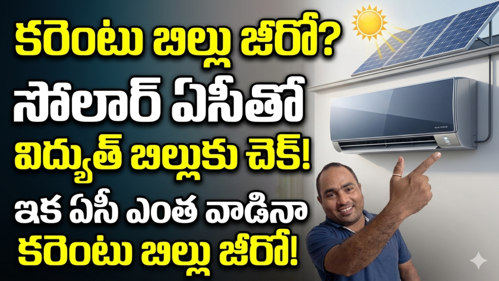 ఈ రోజుల్లో ఏసీ అంటేనే ముందుగా గుర్తుకు వచ్చేది కరెంటు బిల్లు. ఏసీతో కరెంటు బిల్లు తడిసిమోపెడవుతుందని భావిస్తారు. కానీ సోలార్ ఏసీలో కరెంటు బిల్లు జీరో. మరి సోలార్ సిస్టమ్ ఏంటి…? దీని వల్ల ఉపయోగం ఏంటి ? కరెంటు బిల్లు ఎంత వస్తుందో పూర్తి వివరాలు తెలుసుకుందాం.