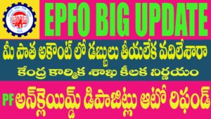 EPFO అన్‌క్లెయిమ్డ్‌ డిపాజిట్లు ఆటో రిఫండ్‌ ఈపీఎఫ్‌ఓలో ఎవరూ క్లెయిమ్‌ చేయని మొత్తాలకు (Unclaimed deposits) సంబంధించి కేంద్ర...