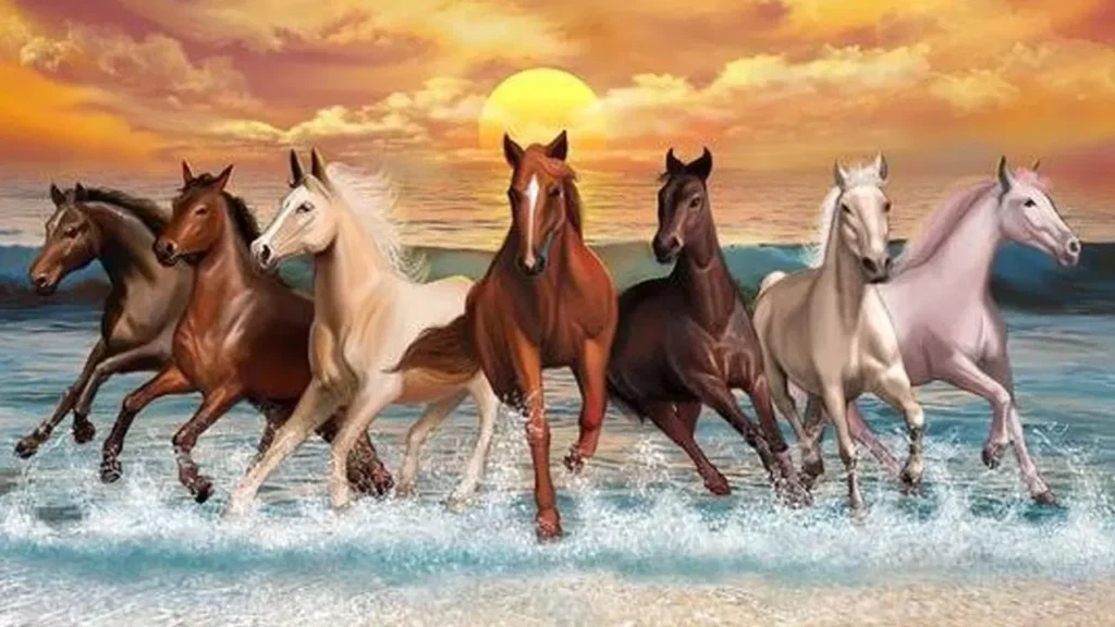 అభివృద్ధి, వేగం, శక్తికి గుర్రాలు ప్రతీకలు. ముఖ్యంగా ఏడు గుర్రాల చిత్రాన్ని దక్షిణ గోడపై ఉంచడం శుభప్రదంగా భావిస్తారు. గుర్రాల ముఖాలు లోపలికి చూస్తూ ఉండేలా ఉంచితే వృత్తి, వ్యాపారంలో అడ్డంకులు తొలగి వేగవంతమైన పురోగతి కలుగుతుందని నమ్మకం.